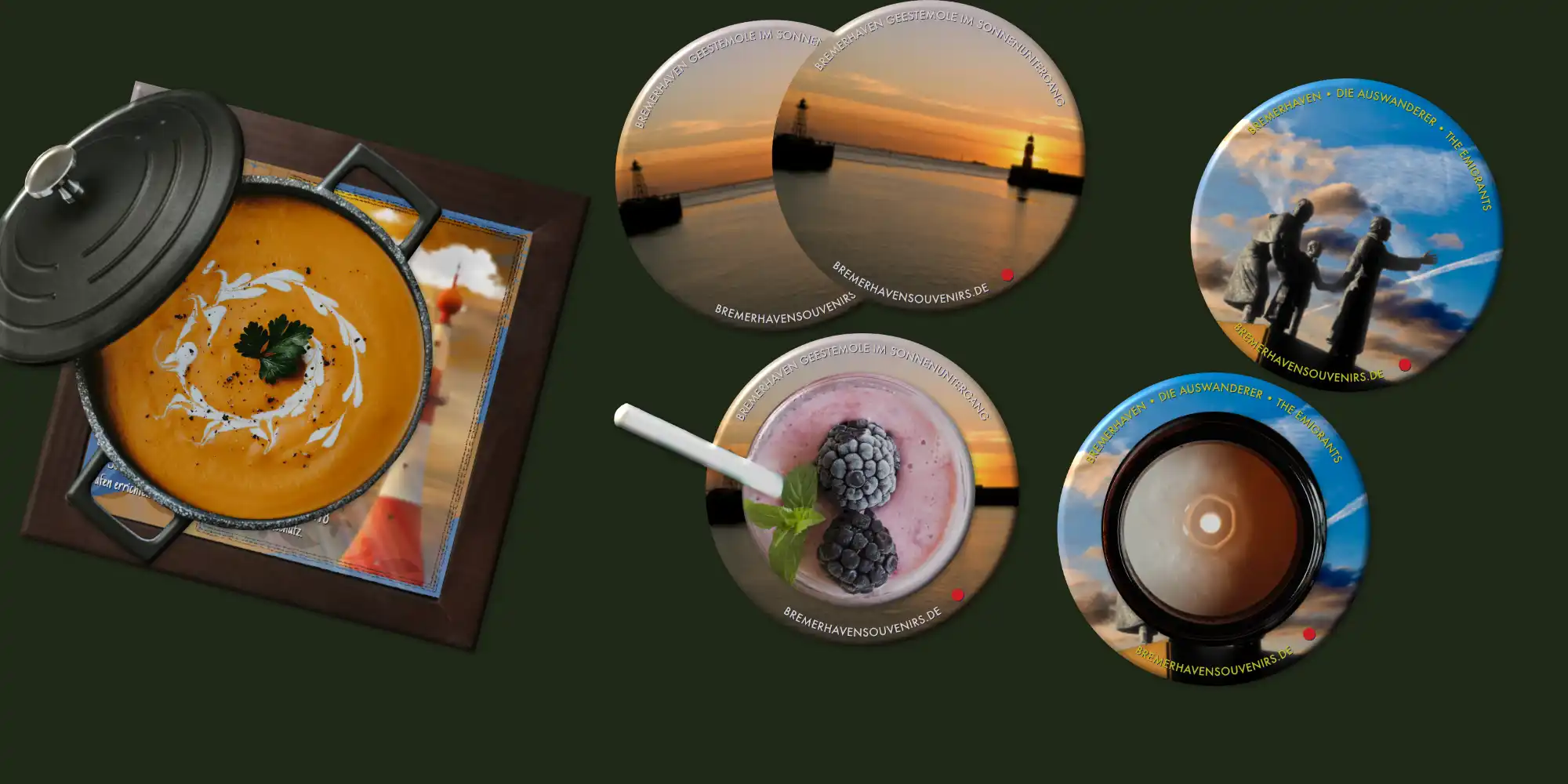 Bremerhaven Souvenirs Designs – die praktischen Untersetzer aus Glas und Keramik, mit Fotografien von Bremerhaven oder selbst gestalteten Illustrationen, gibt es nur bei uns.