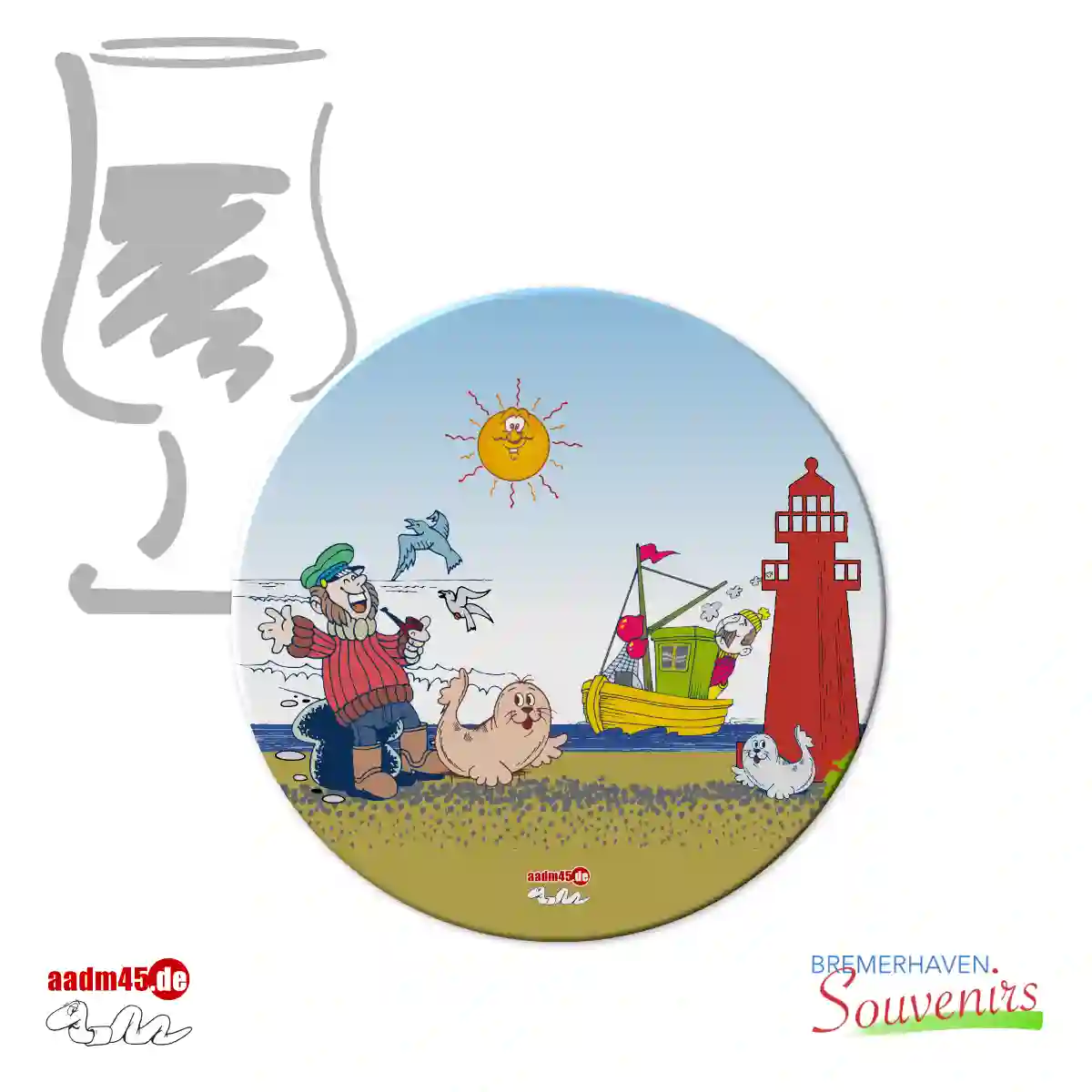 Bremerhaven Souvenirs Design – Ø 10 cm, 4 mm dickes, geschliffenes Glas, 4 Gumminoppen auf der Unterseite