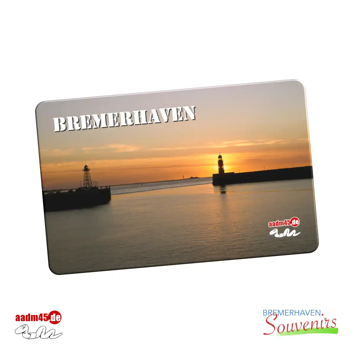 Bremerhaven Souvenirs Design – 54×85 mm großes, hauchdünnes Aluminium mit glänzender Oberfläche und aufgeklebtem Magnetstreifen.