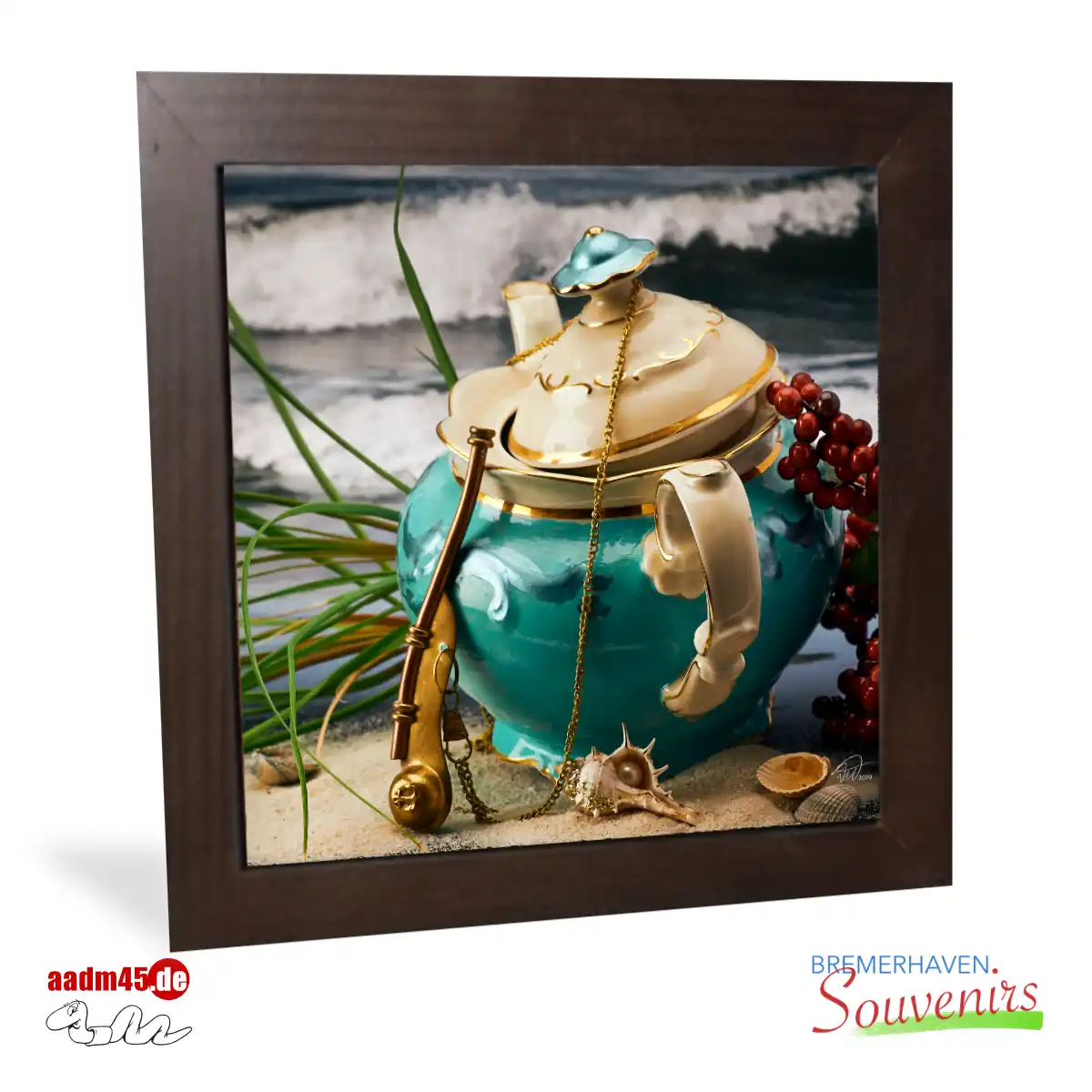 Bremerhaven Souvenirs Design – 15×15 cm Keramikbild im 20×20 cm Holzrahmen. Zum Aufhängen, Aufstellen und Unterstellen.